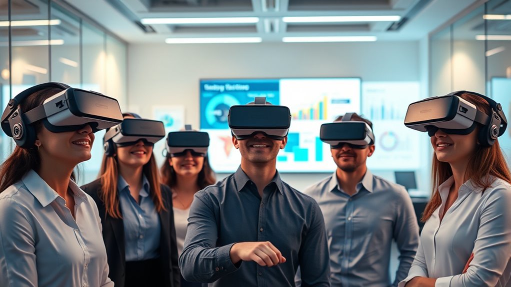 Virtual reality (VR) for training and simulation in business gives you immersive experiences that mimic real-world scenarios. This tech boosts engagement and retention, with studies showing an 80% retention improvement versus traditional methods. Industries like healthcare, aviation, and retail are already reaping the benefits. Plus, VR can save on training costs and time dramatically. If you keep exploring, you’ll uncover even more about its impactful applications in the business world.